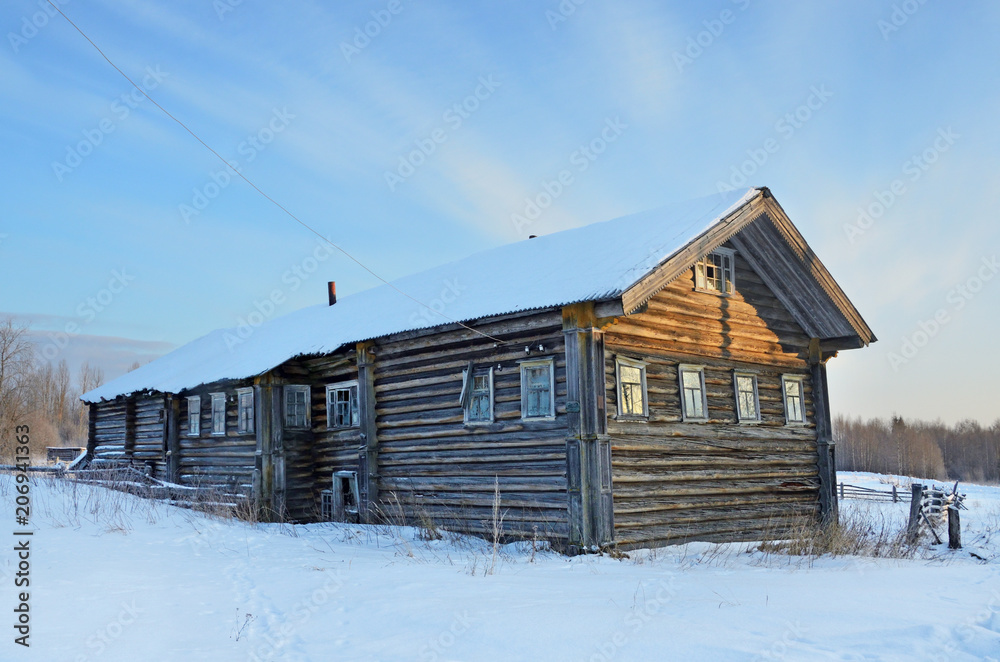 Fotografie Типичный деревянный дом 19-20 веков в деревне Сырья зимой
