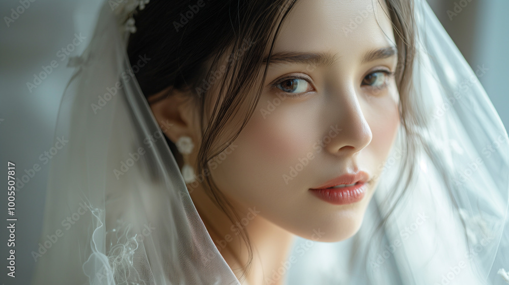 Fotografie ベールを付けた白いドレスの花嫁「AI生成画像」