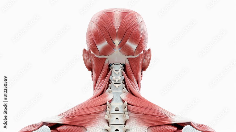 Fotografie 3D realistic illustration of the neck muscular system on a white background