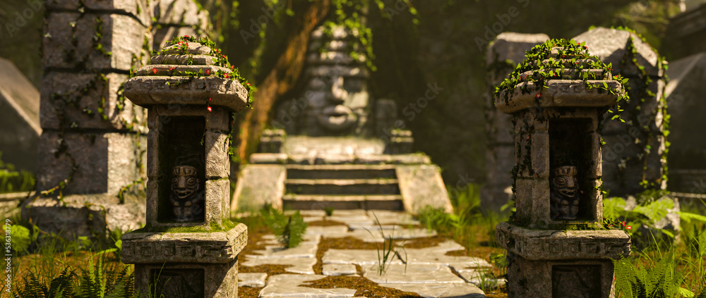 Fotografie 3D rendered mystic ancient aztec ruins
