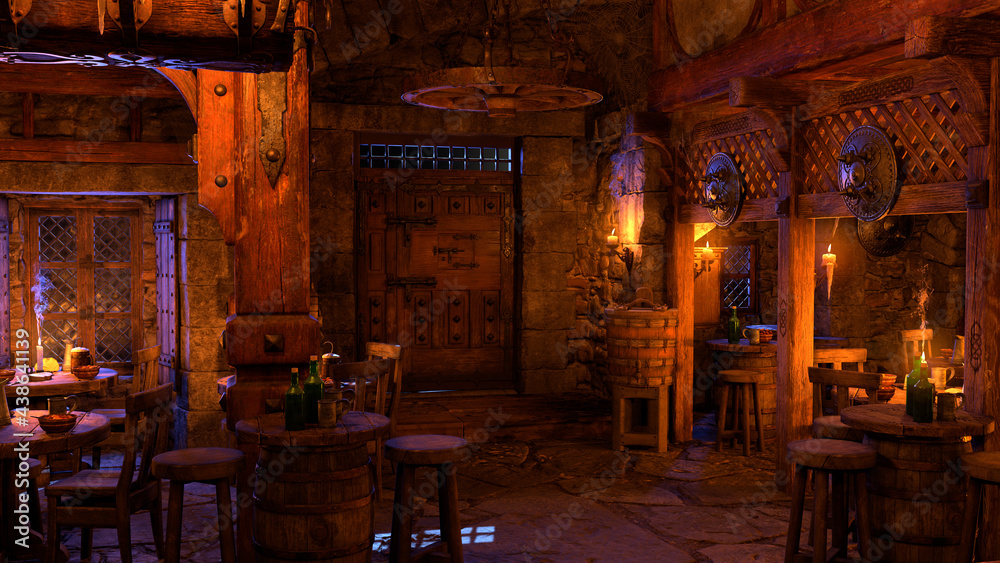 Obraz na plátně 3D Rendering Medieval Tavern