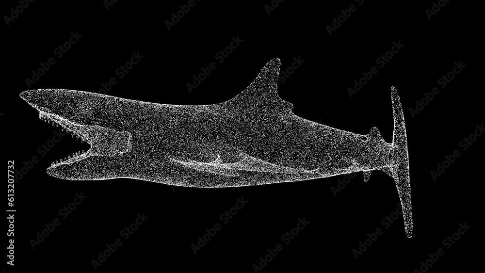 Fotografie 3D Shark with open mouth on black background