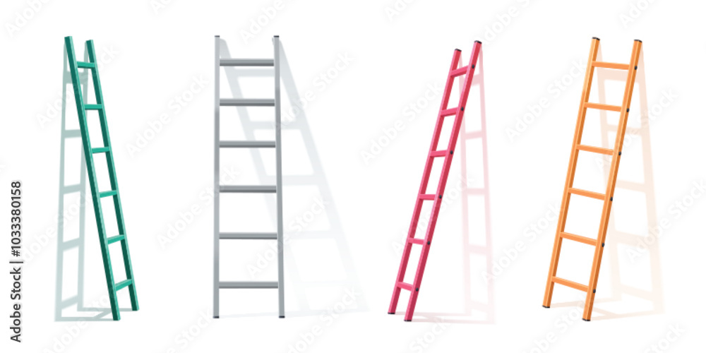 Fotografie 3d vector ladder leaning on white wall with shadow
