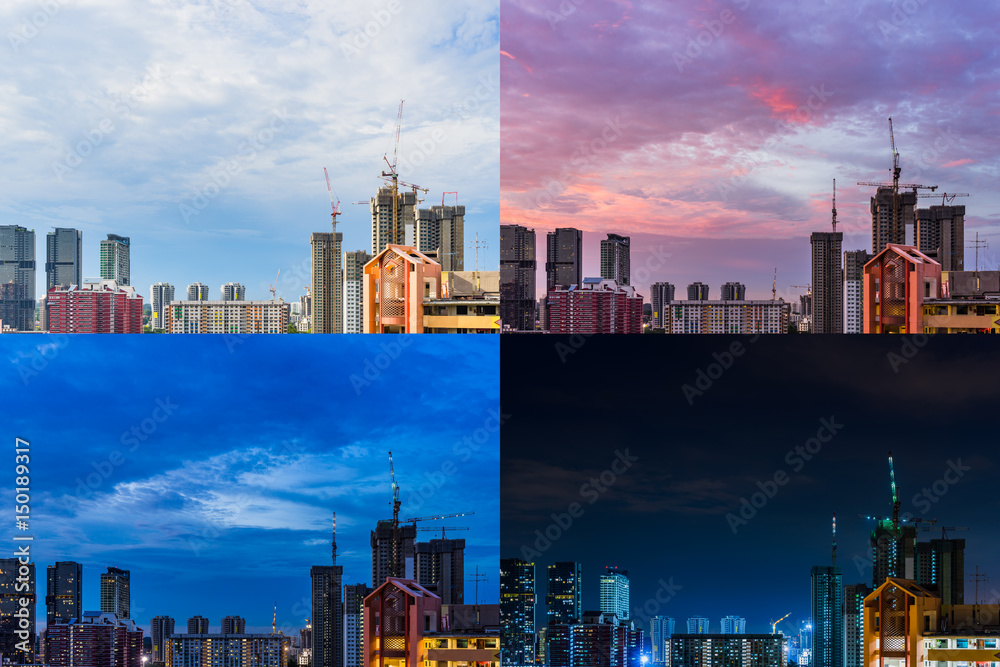 Fotografie 4 Moments of Day to Night Construction site Downtown Singapore