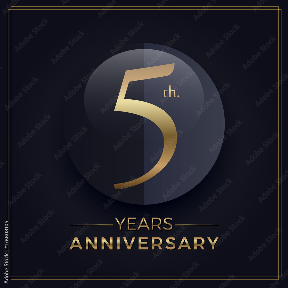 Fotografie 5 years gold and black anniversary celebration simple logo template on dark back