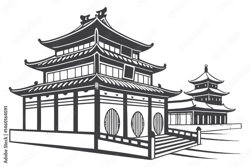 Fotografie 99 Traditional Chinese architecture, silhouettes, ornate gates, pagoda roofs, Ea