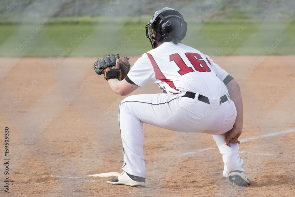 Obraz na plátně A baseball player catches for the pitcher.