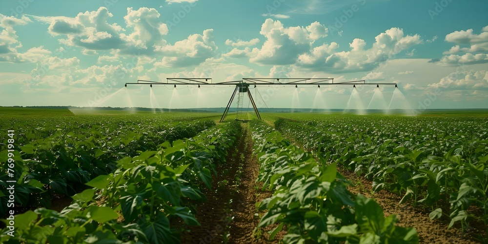 Fotografie A Bright Day on a Spacious Soybean Farm with Central Pivot Irrigation in Operation