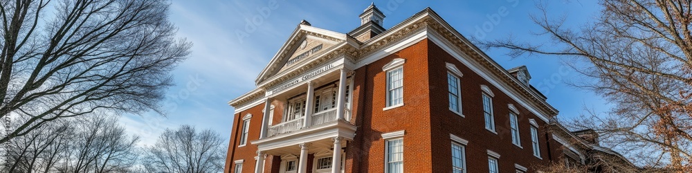 Fotografie A classic-style building with a large clock tower, suitable for use in historica