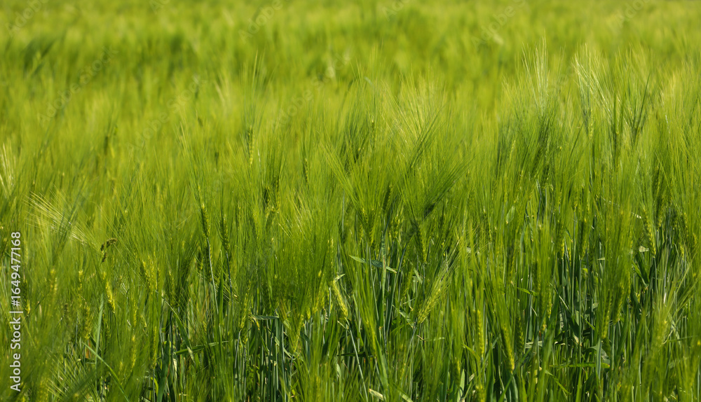 Obraz na plátně A close-up view of a lush green field swaying in the wind