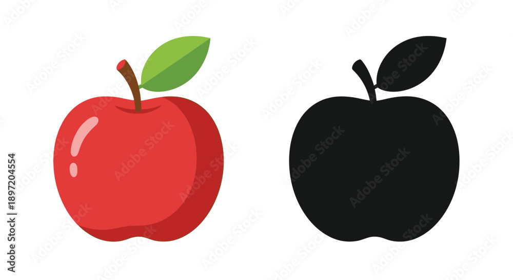 Fotografie A colorful apple alongside its dark contrasting silhouette