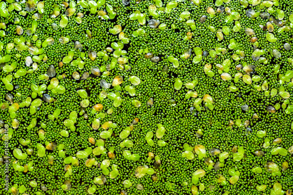 Fotografie A continuous layer of floating algae Lemna and Wolffia on the surface of a eutro