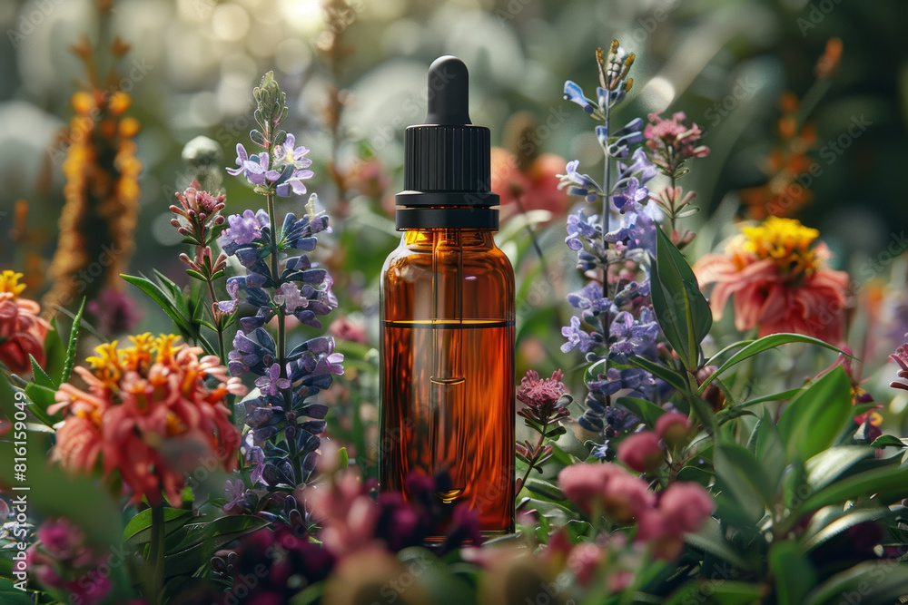 Fotografie A dropper bottle of herbal tincture positioned on a blank canvas, highlighting alternative medicine options