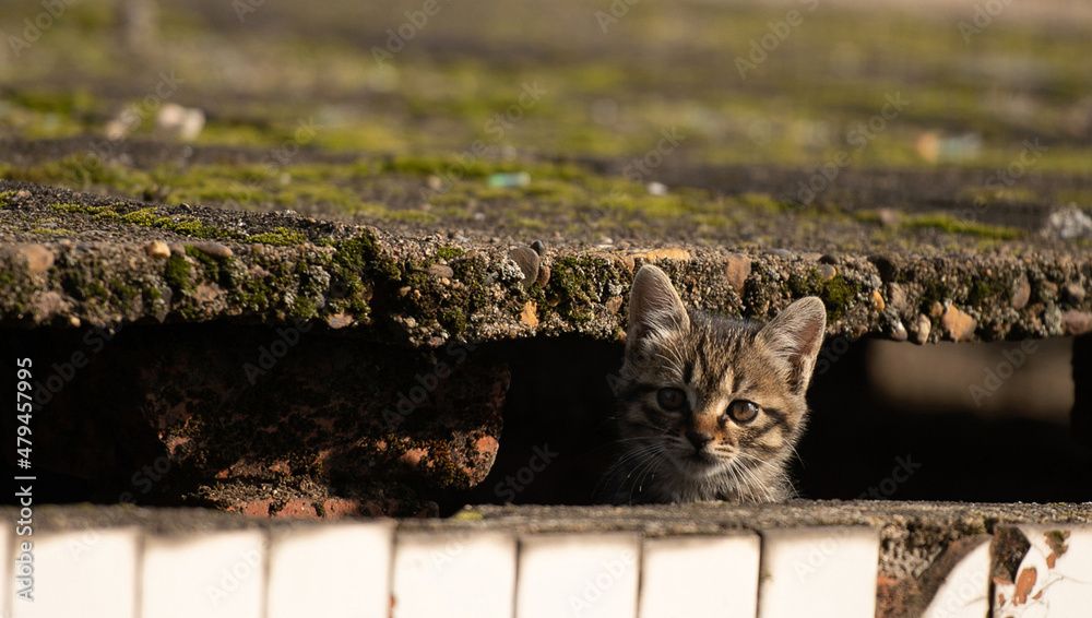 Obraz na plátně A family of adorable black and brown tiger-striped wild Chinese cats rest, play,