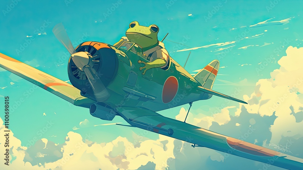 Fotografie A Frog Pilot Soaring Through Sunny Skies In A Vintage Plane