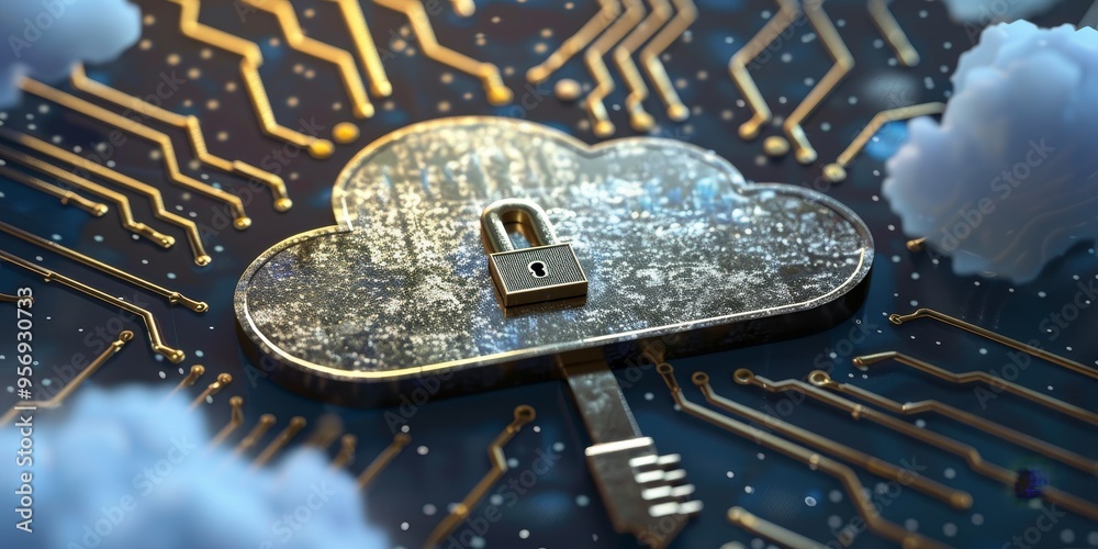 Fotografie A padlock and key icon over a cloud storage platform, illustrating encrypted dat