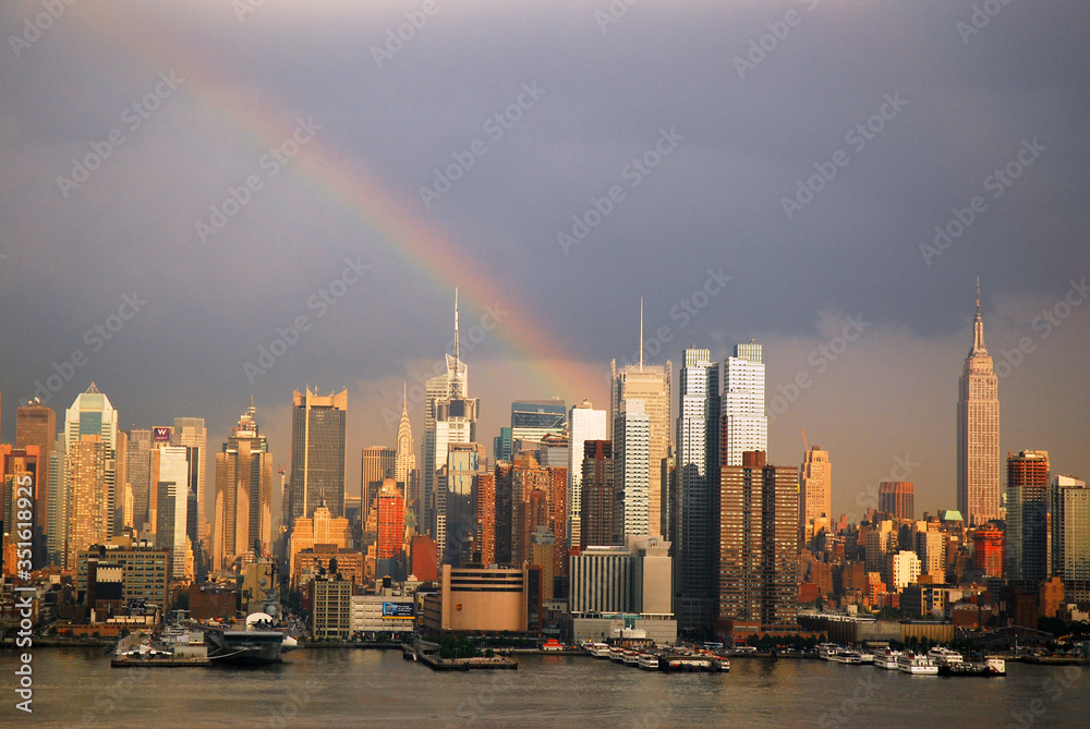 Obraz na plátně A rainbow forms as a storm clears over Manhattan