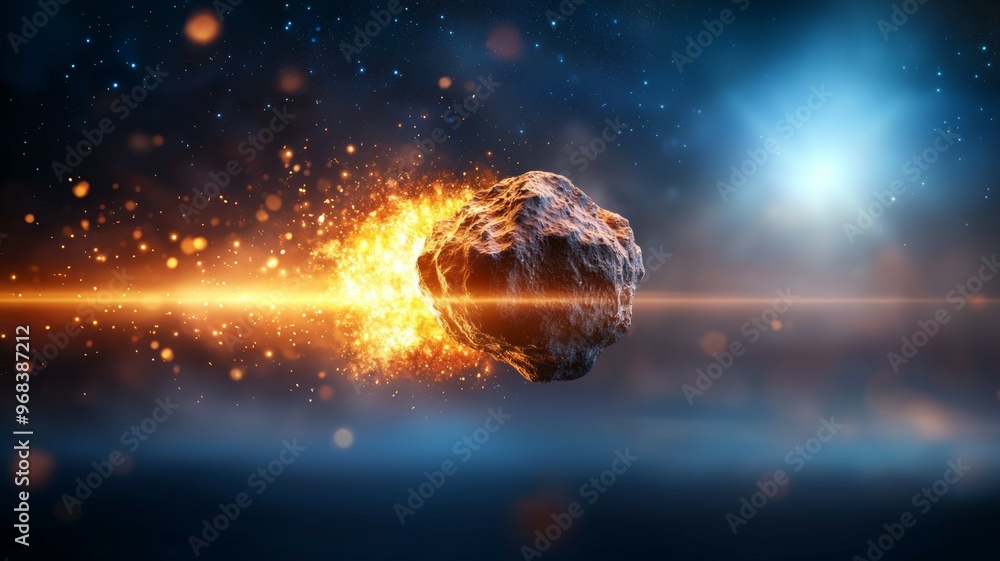 Fotografie A rock is flying through space and leaving a trail of fire behind it
