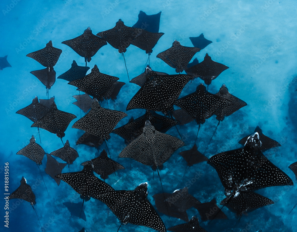 Obraz na plátně A school of eagle rays while free diving in Tahiti, French polynesia