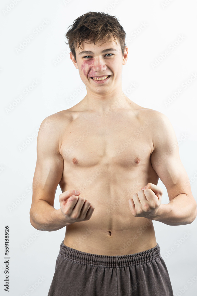 Fotografie A shirtless 17 year old muscular boy
