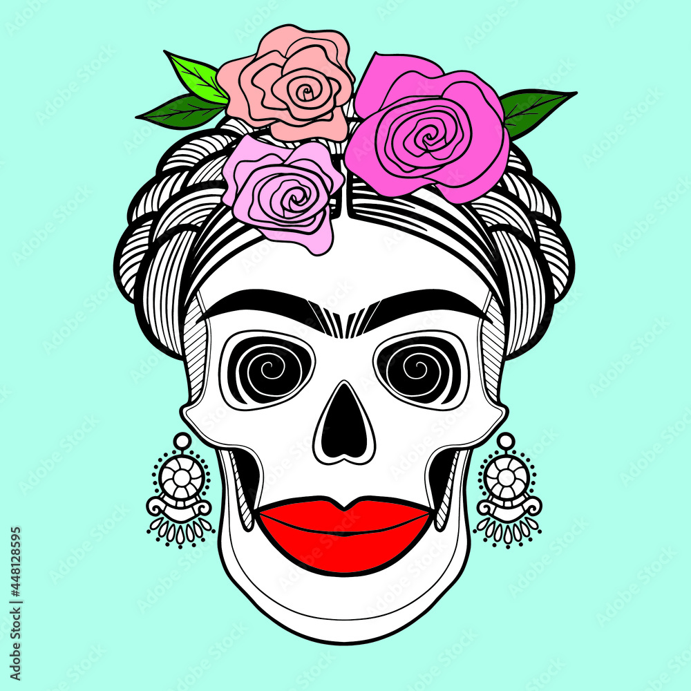 Obraz na plátně A skull with a female face in the image of Frida Kahlo