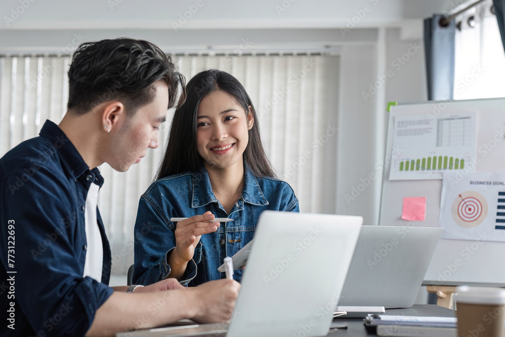 Fotografie A team of accounting business people is having a brainstorming meeting to plan their work together in the company conference room