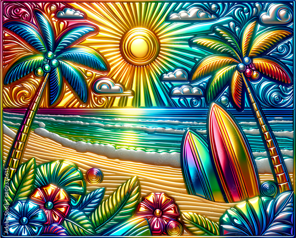 Fotografie A tropical paradise features pristine beaches, turquoise waters, lush greenery, and vibrant wildlife, offering a serene escape and a slice of heaven on earth