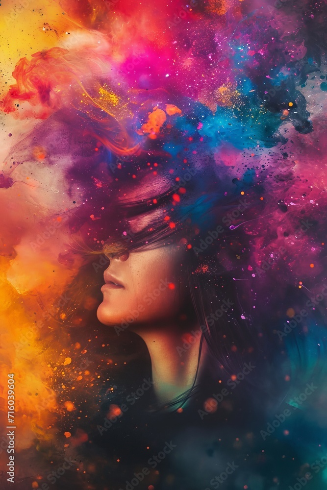 Fotografie A vibrant masterpiece, a woman's colorful hair is a brushstroke of magenta, brin