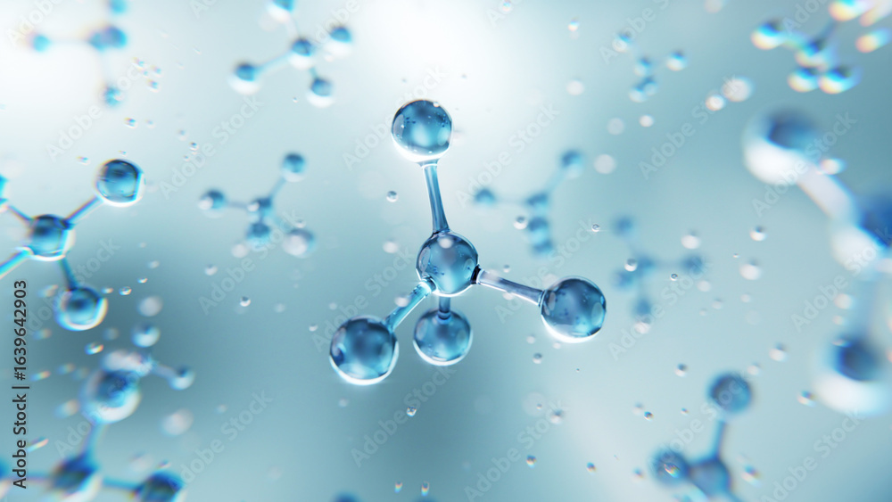 Fotografie Abstract 3D scene showing radiant capsules with serum droplets, highlighting hydration, glow, and molecular skincare science in a premium cosmetic setting