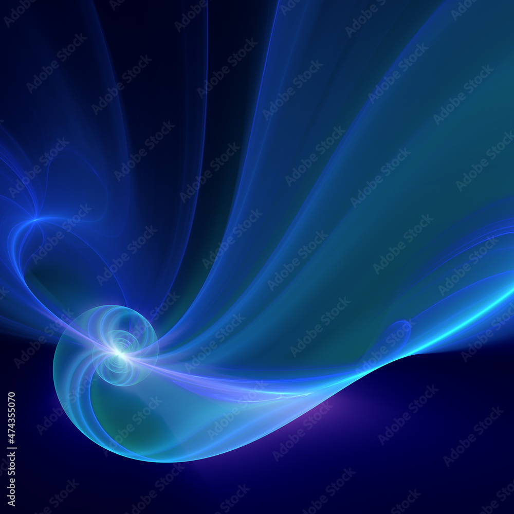 Obraz na plátně Abstract blue spiral fractal art background, perhaps suggestive of smoke, or a nautilus shell