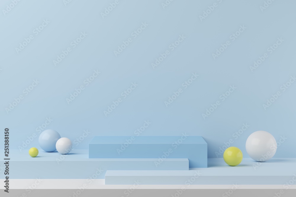 Fotografie Abstract geometry shape blue color podium on blue background with colorful ball for product
