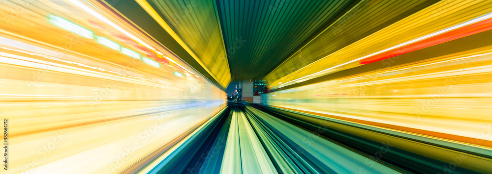 Fotografie Abstract high speed technology POV train motion blurred concept from the Yuikamo