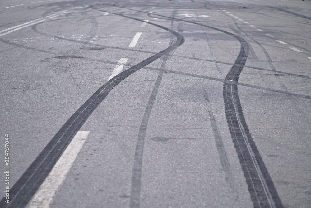Fotografie Abstract of Black tire wheels caused by Drift car on the road