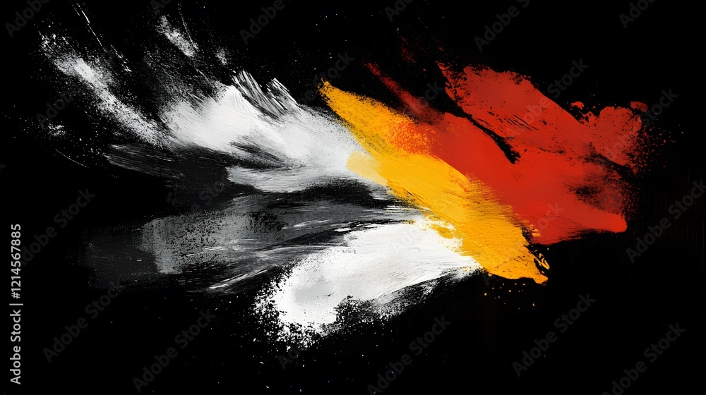 Fotografie Abstract Paint Explosion White Yellow Red Black Texture