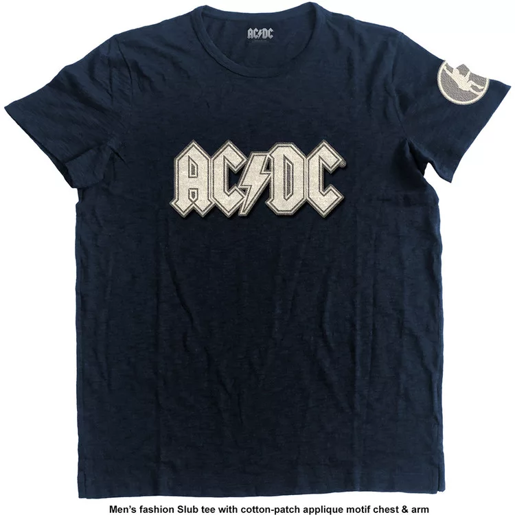 Tričko AC/DC- Logo & Angus Applique Slub Mens Navy