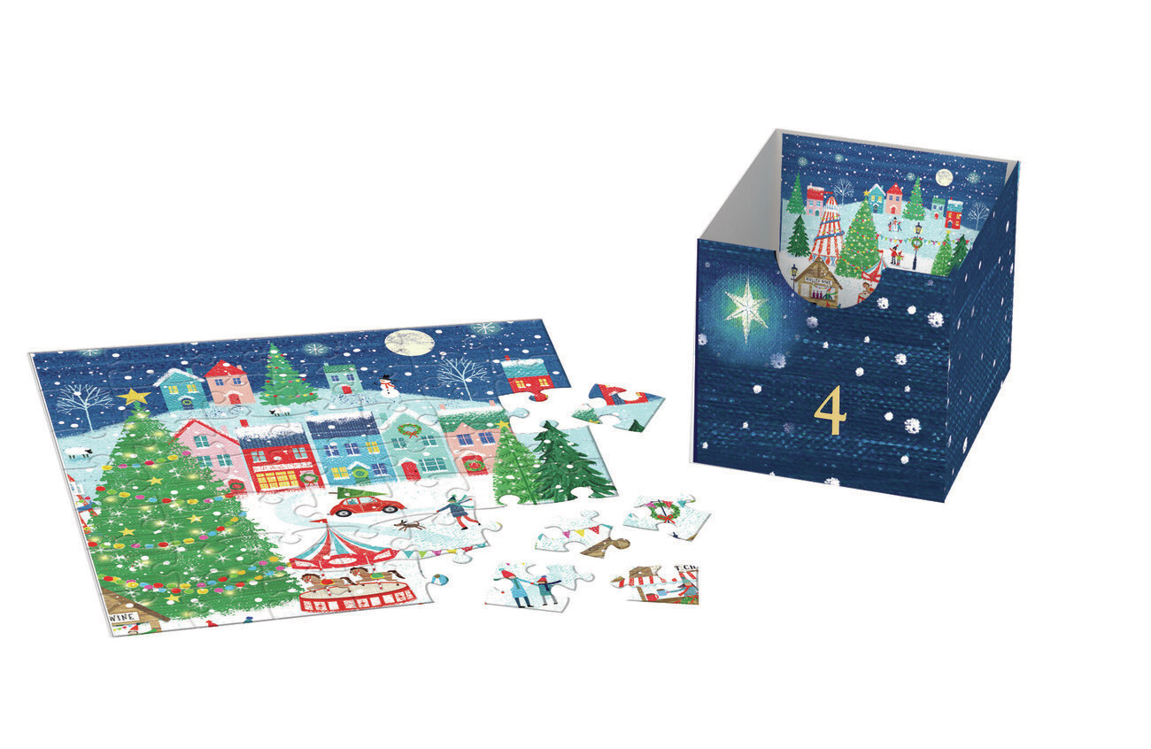 Zimní vesnička: světýlka, sníh a klidné prosincové večery. Adventní rituál, který navodí sváteční klid a pohodu. V kalendáři je 24 mini puzzlů s motivy vánoční vesničky. Za každým okénkem čeká 50dílné mini puzzle. Přesné výseky zajišťují plynulé skládání. Den po dni skládáte příběh Vánoc. Ilustrátor: Johanne Cave.
