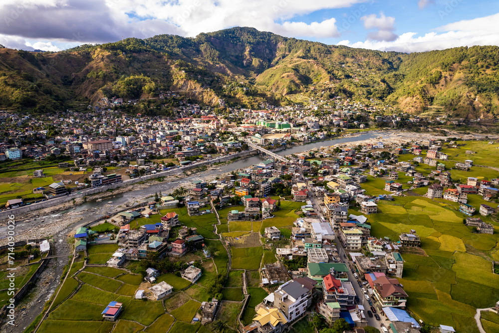 Fotografie Aerial of the town of Bontoc, the capital of the landlocked province of Mountain Province, in the Cordillera Region of the Philippines