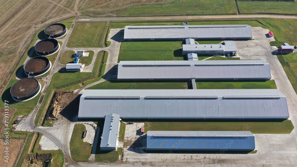 Fotografie Aerial view of a huge cattle farm located in the countryside amidst fields