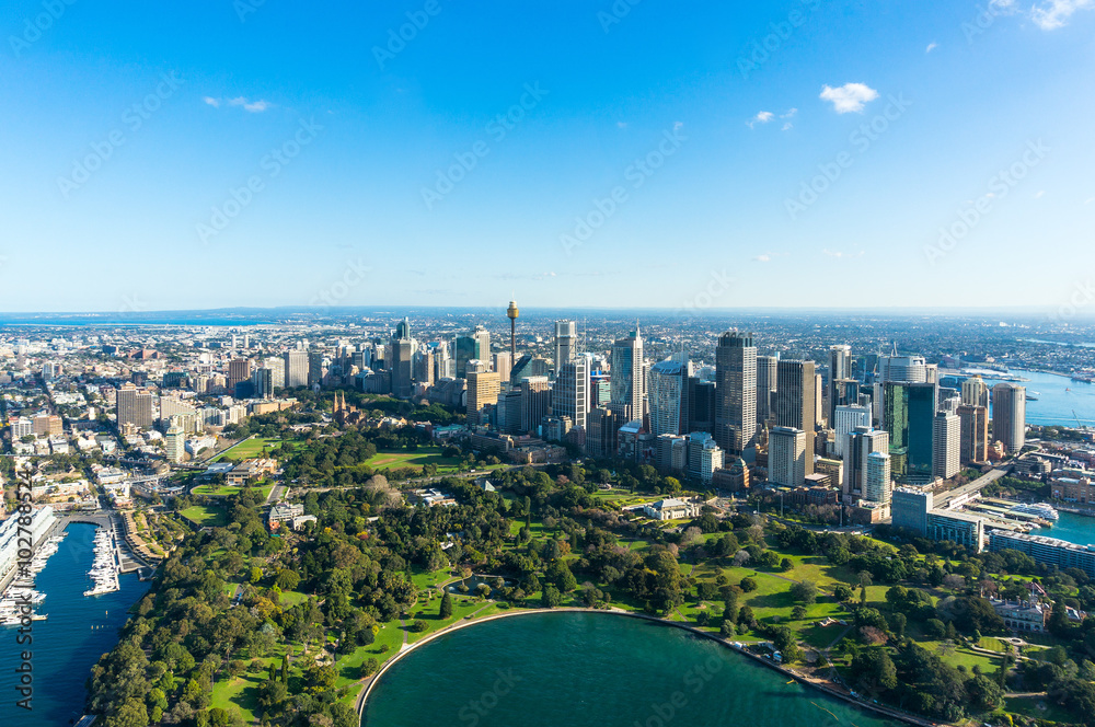 Fotografie Aerial view on Sydney CBD and Royal Botanic Gardens