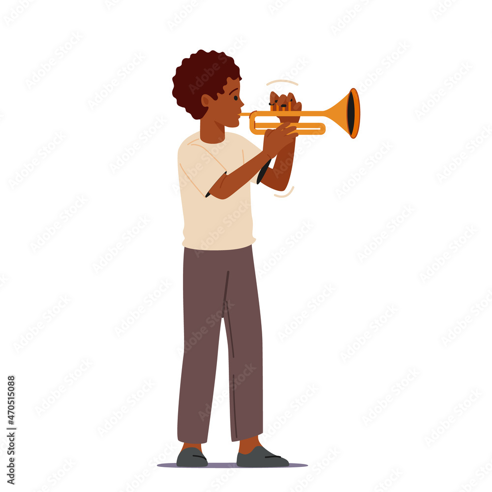 Fotografie African Boy Playing on Trumpet Perform Concert, Blowing Musician Composition