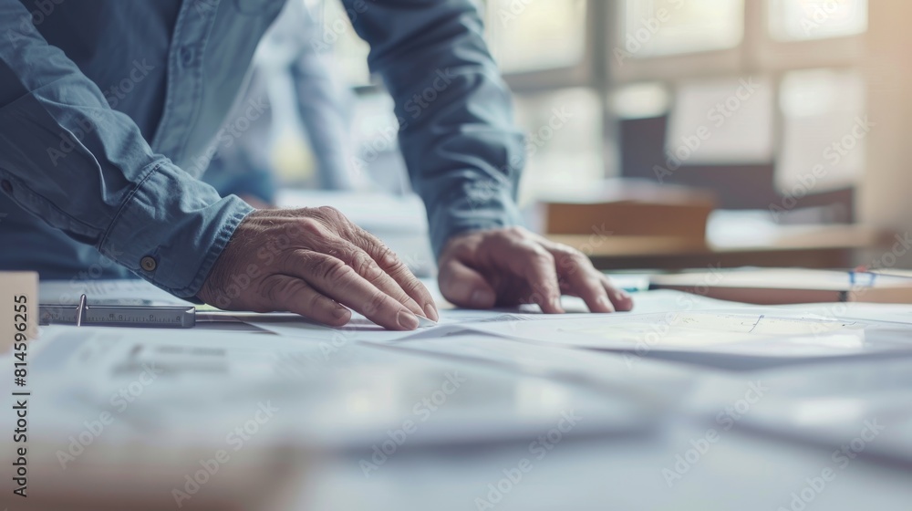 Fotografie AI generated illustration of an engineer carefully reviewing detailed architectu