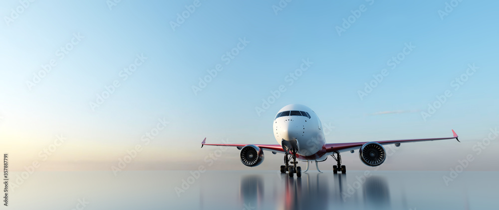 Obraz na plátně Airplane on runway at sunset