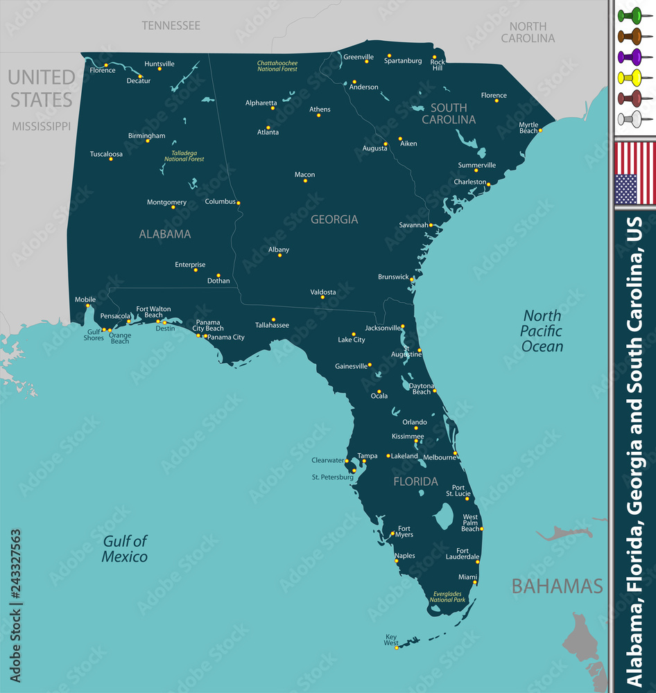 Fotografie Alabama, Florida, Georgia and South Carolina