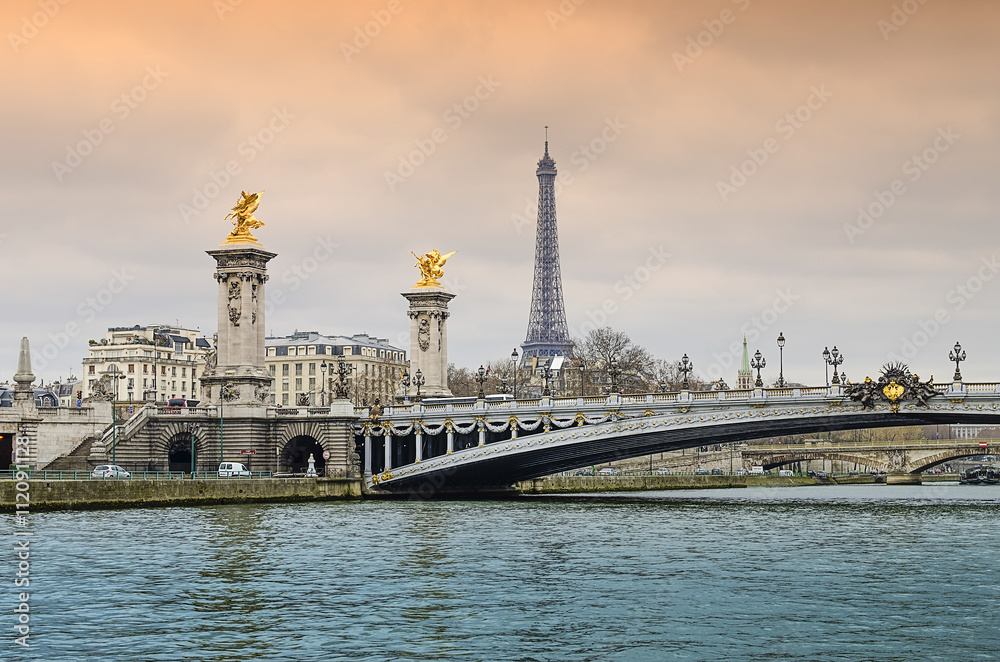 Fotografie Alexander bridge in Paris, Eiffel Tower