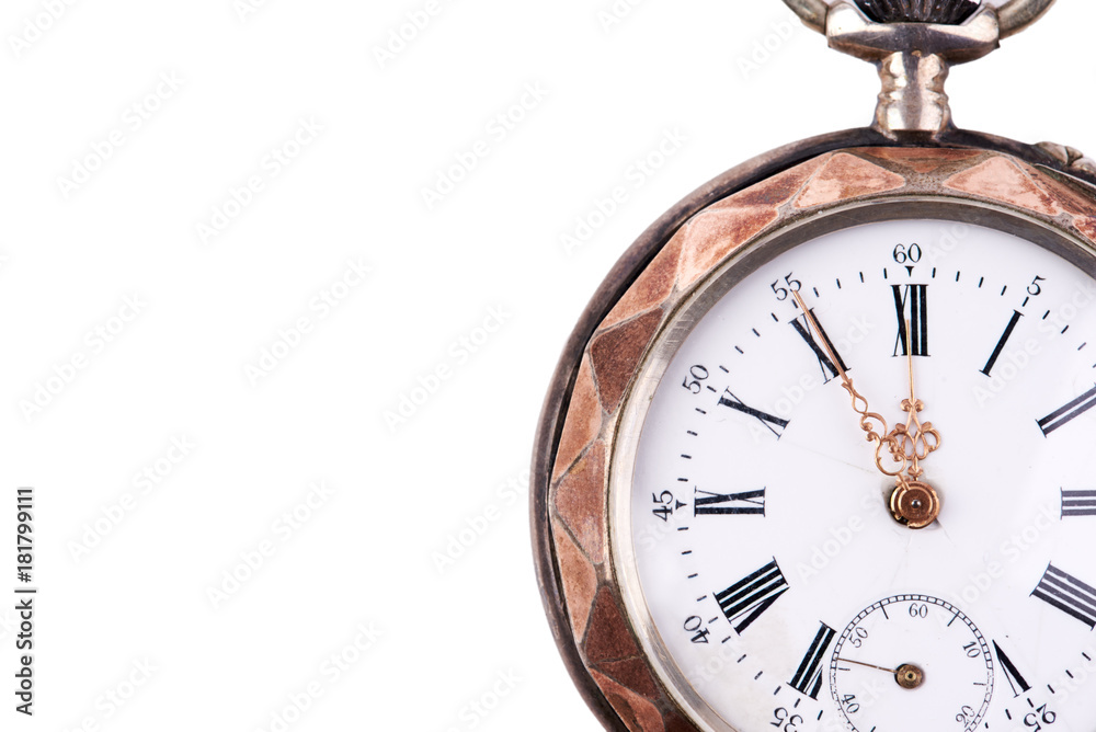 Fotografie Alte Taschenuhr isoliert, weißer Hintergrund