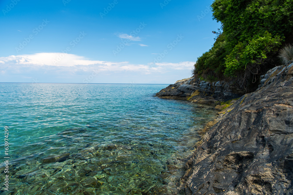Fotografie Amazing turquise water on the coast of the beautiful greek island Thasos
