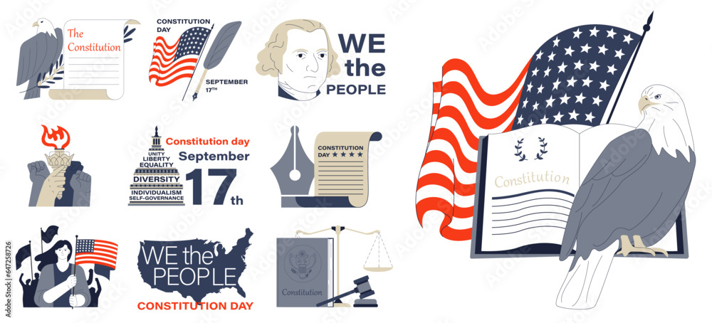 Obraz na plátně American constitution day set
