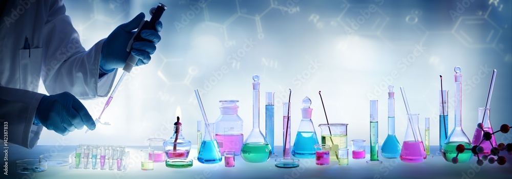 Fotografie Analysis Laboratory - Scientist With Pipette And Beaker - Equipment Chemical