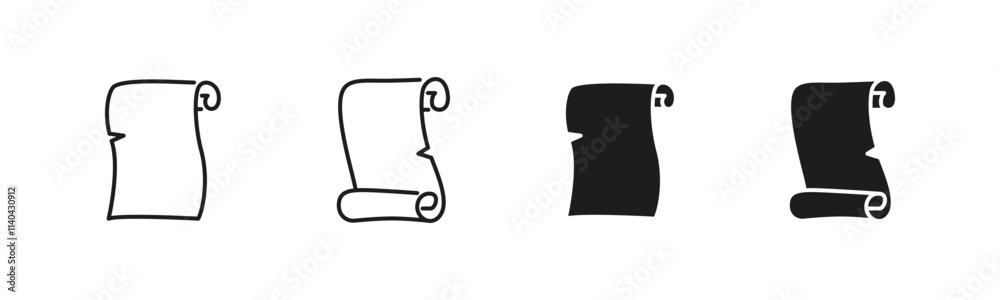 Fotografie Ancient scroll icons. Historical and document scrolls symbols