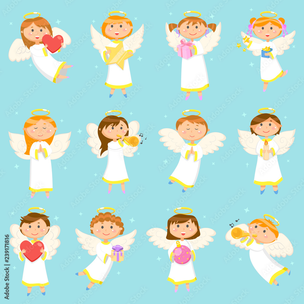 Obraz na plátně Angel Children, Boys and Girls Winter Holiday